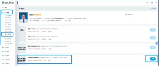 1.报名:12月25日前登录研究生信息管理系统完成报名(个人管理-等级考试管理-在职专博国家英语统考-申请)
