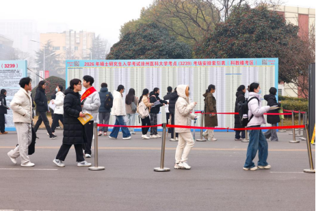 冬至已至,未来可期。12月20-21日,2026年全国硕士研究生招生考试如期举行。随着晨曦初现,考生们井然有序地步入考场。此次硕士研究生招生考试,徐州医科大学考点内共设83个常规考场,2383名考生参加考试。