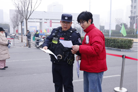 学校始终秉持以考生为核心的服务理念,推出了系列暖心服务:在考场外设置了存放电子设备的手机储物柜,便于考生安心应考;清晰张贴考点布局图及行进路线,确保每位考生能够顺畅、有序地进入考场;开放学生餐厅,为考生提供宁静舒适的用餐环境;配备专业的考试医疗应急车辆,全方位守护考生的身体健康与安全;抽调保卫处人员力量、安排学生志愿者,共同做好考生证件查验、考区秩序维护、考场安全管控、考区周边环境治理及校园交通保障等工作;此外,还为考生准备了专属休息室,并提供暖心红糖茶,缓解考生紧张情绪,助力他们以最佳状态迎接考试。