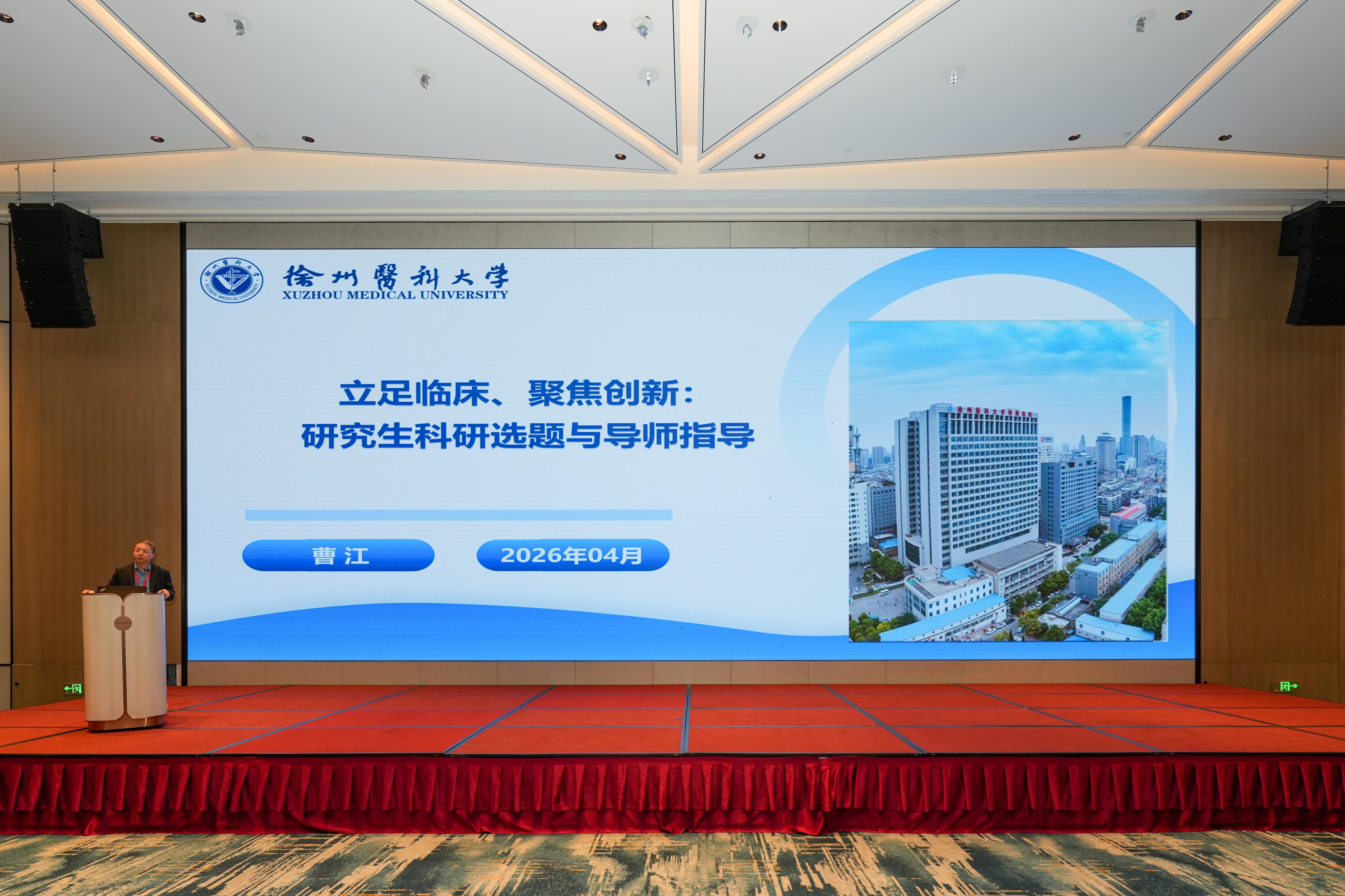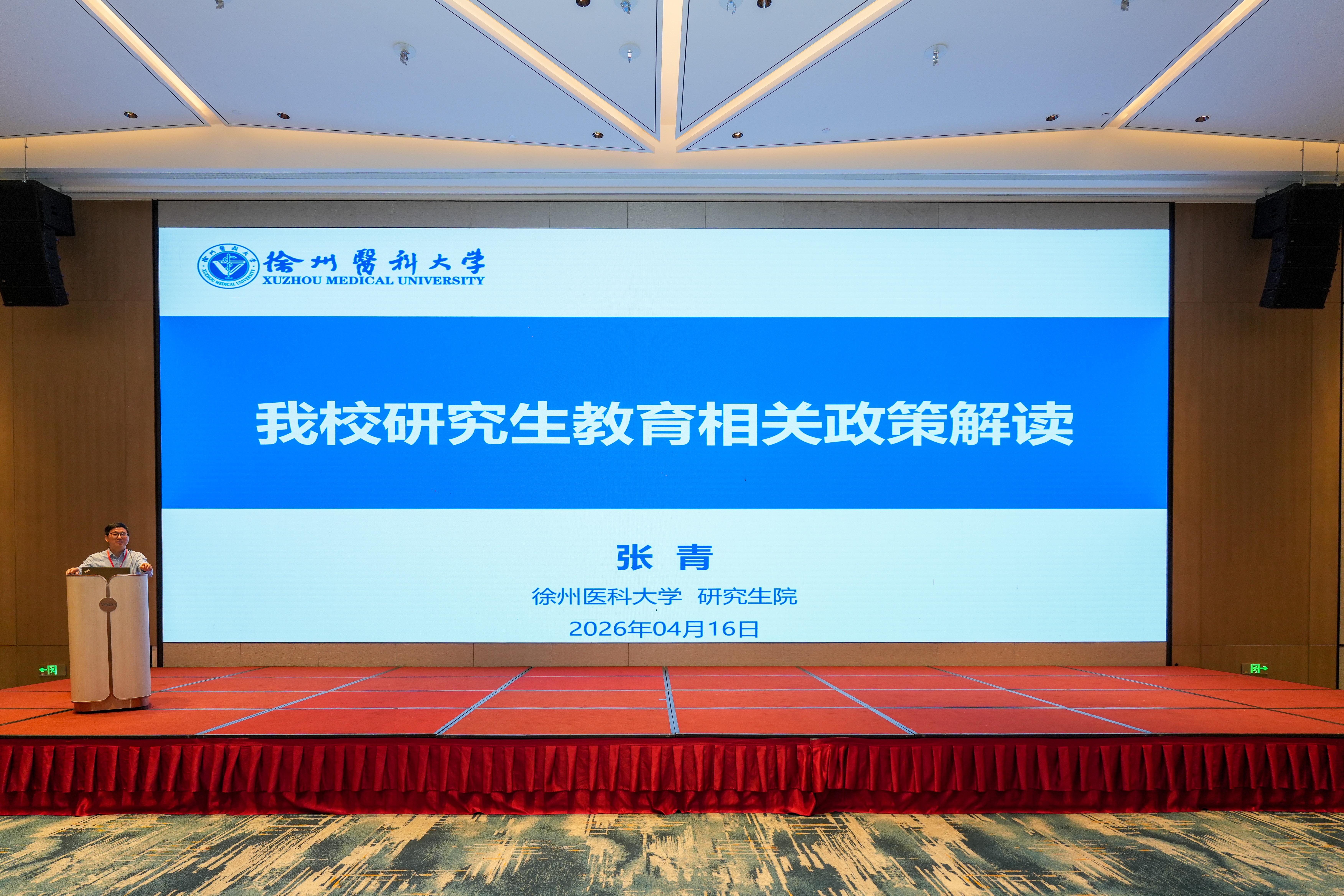 4月16日上午,我校在常州召开2026年度新晋研究生导师培训会。本次会议由研究生院主办,附属常州医院承办,来自23个研究生培养单位的210名研究生导师参加培训。附属常州医院党委书记毛浩丹、徐州医科大学副校长曹君利出席了开幕式。