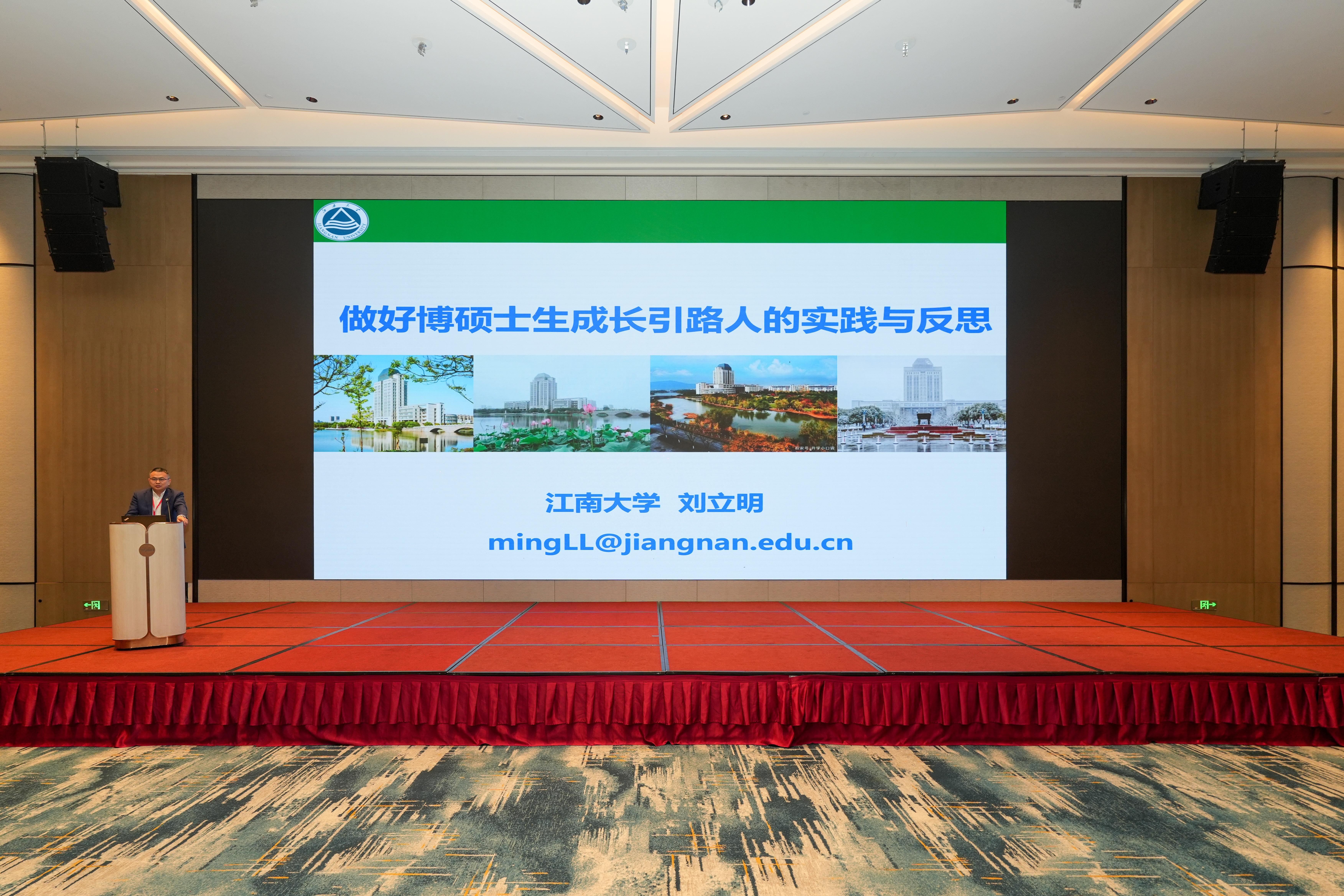 会上,江南大学刘立明教授作了题为《做好博硕士生成长引路人的实践与反思》的报告,他根据新生代00后群体特征,结合导师职责,分享了研究生培养的宝贵经验与感悟;曹君利副校长作了题为《立足高水平学科建设,促进研究生教育高质量发展》的报告,他阐述了研究生教育肩负的历史责任与发展方向,总结学校建设发展成效,同时对未来总体规划和高质量发展作了深度思考;徐州医科大学附属医院教育处处长曹江分享了《立足临床、聚焦创新:研究生科研选题与导师指导》,他结合临床研究详细讲解了研究生科研选题的原则与总体设计以确保科研方法规范,推动科研服务于临床。研究生院院长张青对我校研究生教育相关政策进行了全面解读,他从研究生招生、培养、学位到评先评优、导师队伍等多个维度,详细介绍了学校最新政策与培养要求。